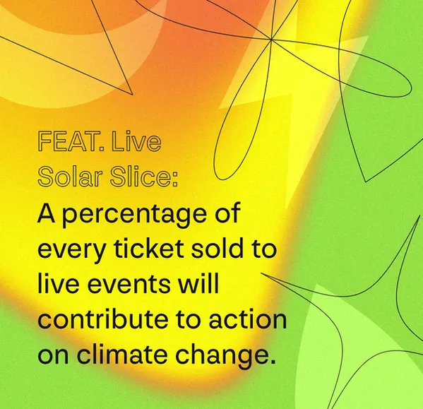 Programs like Solar Slice add a proportion of live event ticket sales into sustainability program. Engaging both the ticket seller and the attendees.